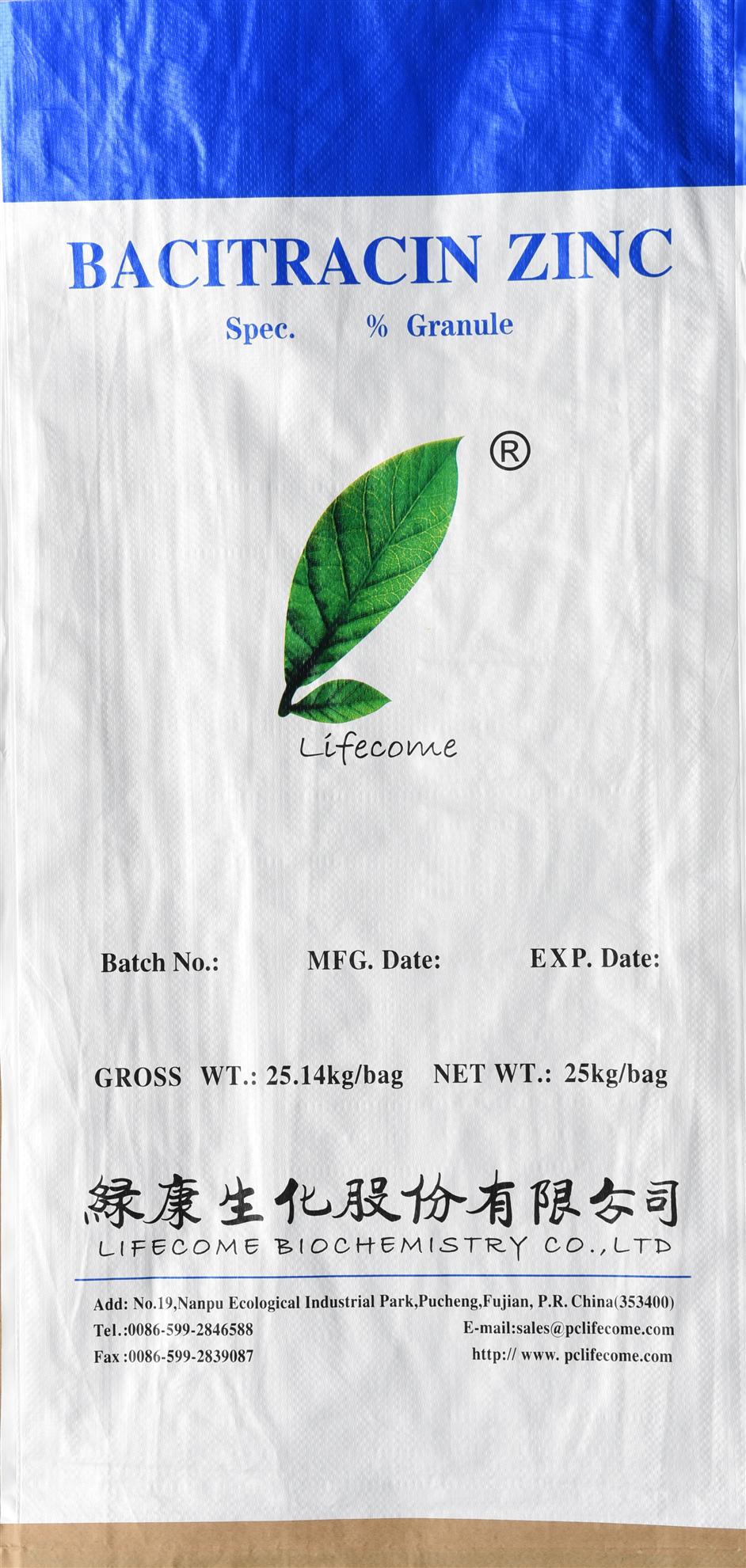 Bacitracin Zinc 15% Granule 25kg per bag is marketed by Lifecome Biochemistry Co. and other products of Bacitracin Zinc 15% Powder andBacitracin Zinc 10% Powder are also available with 25 kg multi-wall bag.
