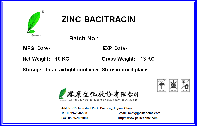 Lifecome Biochemistry Co. regularly supplies different grades of bacitracin zinc, whose main difference is microbiological activity per mg of bacitracin zinc, to comply with customers' needs. However, the company can supplya highly pure product of bacitracin zinc, of which microbiological assay is more than 80 IU/ mg.
